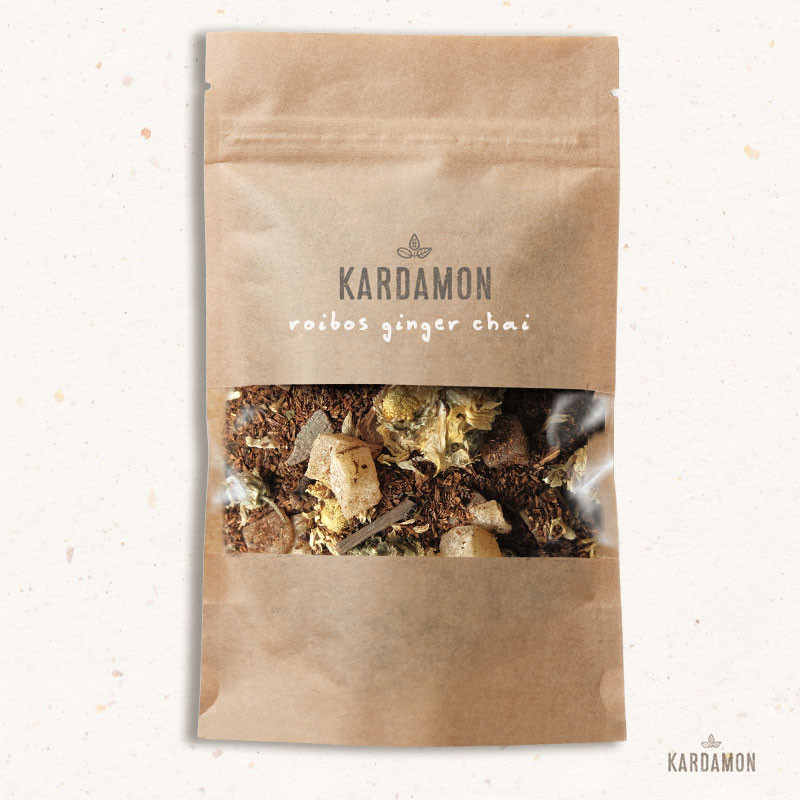 Egzotyczna podróż bez kofeiny! Ginger Chai to Rooibos o pikantnym, intensywnym zapachu imbiru, cynamonu i goździków. Miodowy, naturalnie słodki smak Rooibos łączy się z korzennym ciepłem chai. Rooibos jest relaksujący, a imbir wspiera trawienie. Idealny dla zmysłowego ciepła o każdej porze.