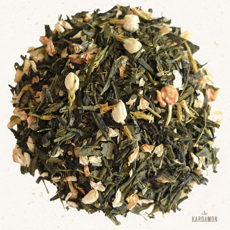 Miks zmysłowej zielonej Senchy z naturalnymi pąkami jaśminu.